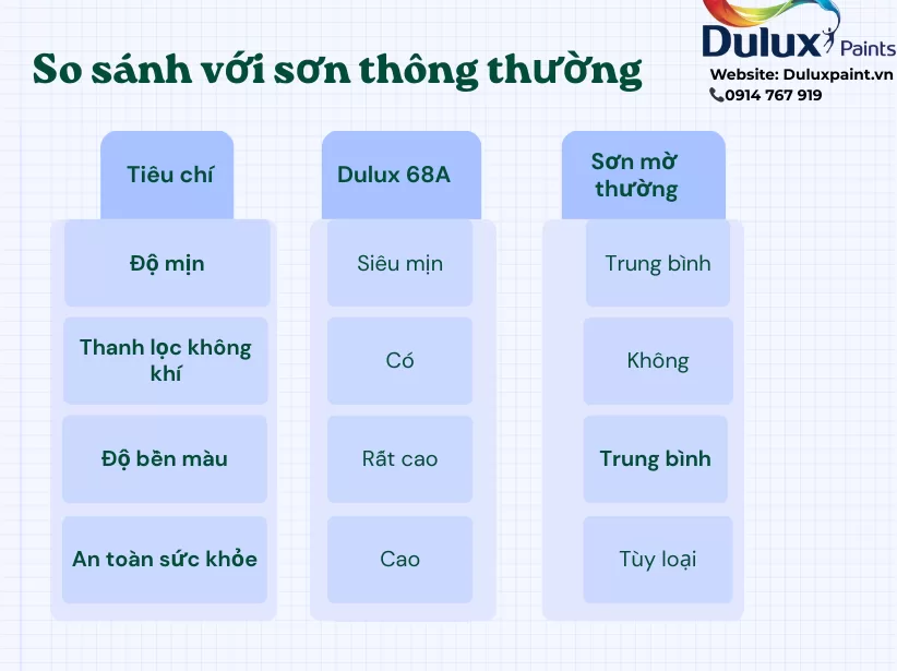 5. So sánh Sơn Dulux siêu mờ 68A với các dòng sơn khác